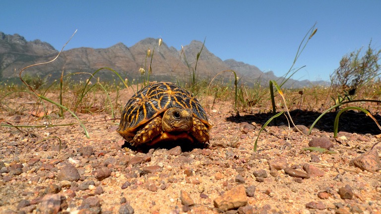 With only about 800 adults left, this exquisitely patterned tortoise is critically endangered due to habitat breakdown from human activity.