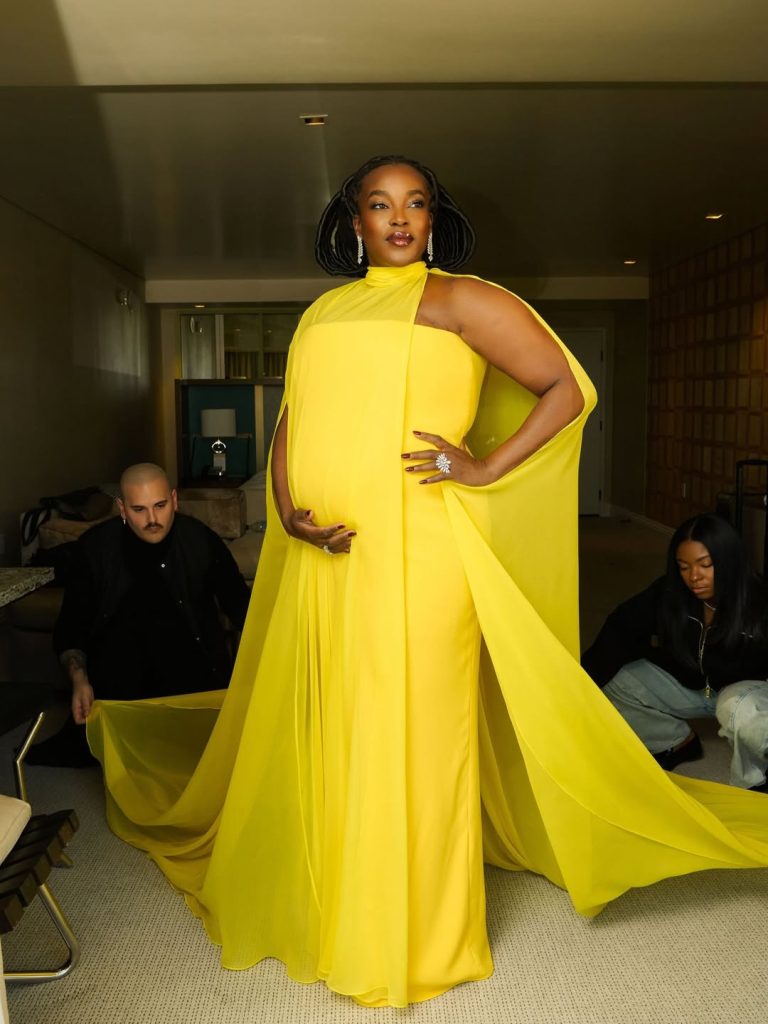 Wunmi wore a custom sunshine yellow gown by Matthew Reisman. She told Vogue that the dress held special meaning for her, as it reflects the Yoruba phrase “Ìyá ni wúrà”, which translates to “Mother is gold”.